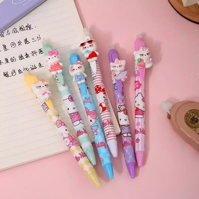 Todas as canetas são decoradas e Possuem Pingentes Fofinhos com a Hello kitty em 6 Estampas!